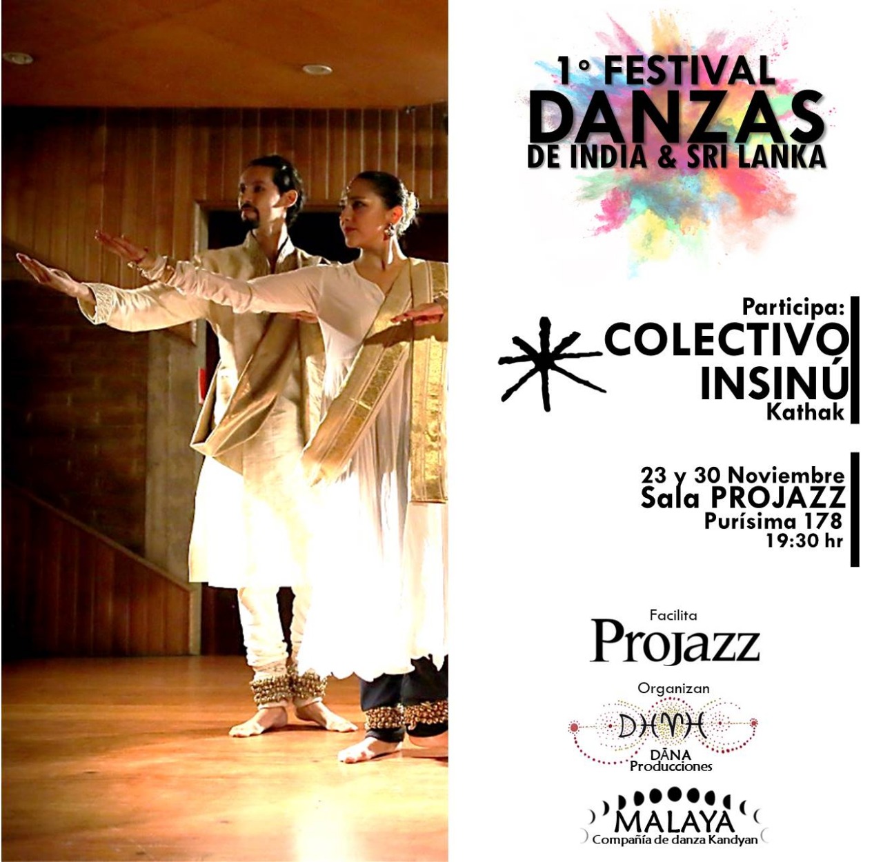Cristina Espinoza y Fabián Riquelme del Colectivo Insinú participarán con kathak (danza clásica del norte de India) en el 1° Festival Danzas de India & Sri Lanka, a realizarse en la Sala Projazz de Santiago de Chile, el 23 de noviembre a las 19:30 hrs. Cristina y Fabián presentarán piezas aprendidas directamente de su maestra Guru Prerana Deshpande, directora de Nrityadham School of Performing Arts, Pune, India.