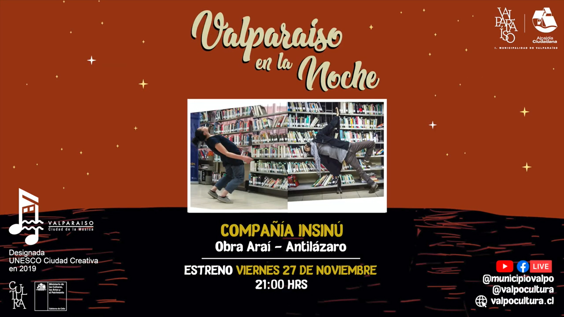 27 Nov 2020. Valparaíso en la noche (Araí+Antilázaro) Teatro Municipal de Valparaíso, Chile | Noticia | Afiche | Registro » |