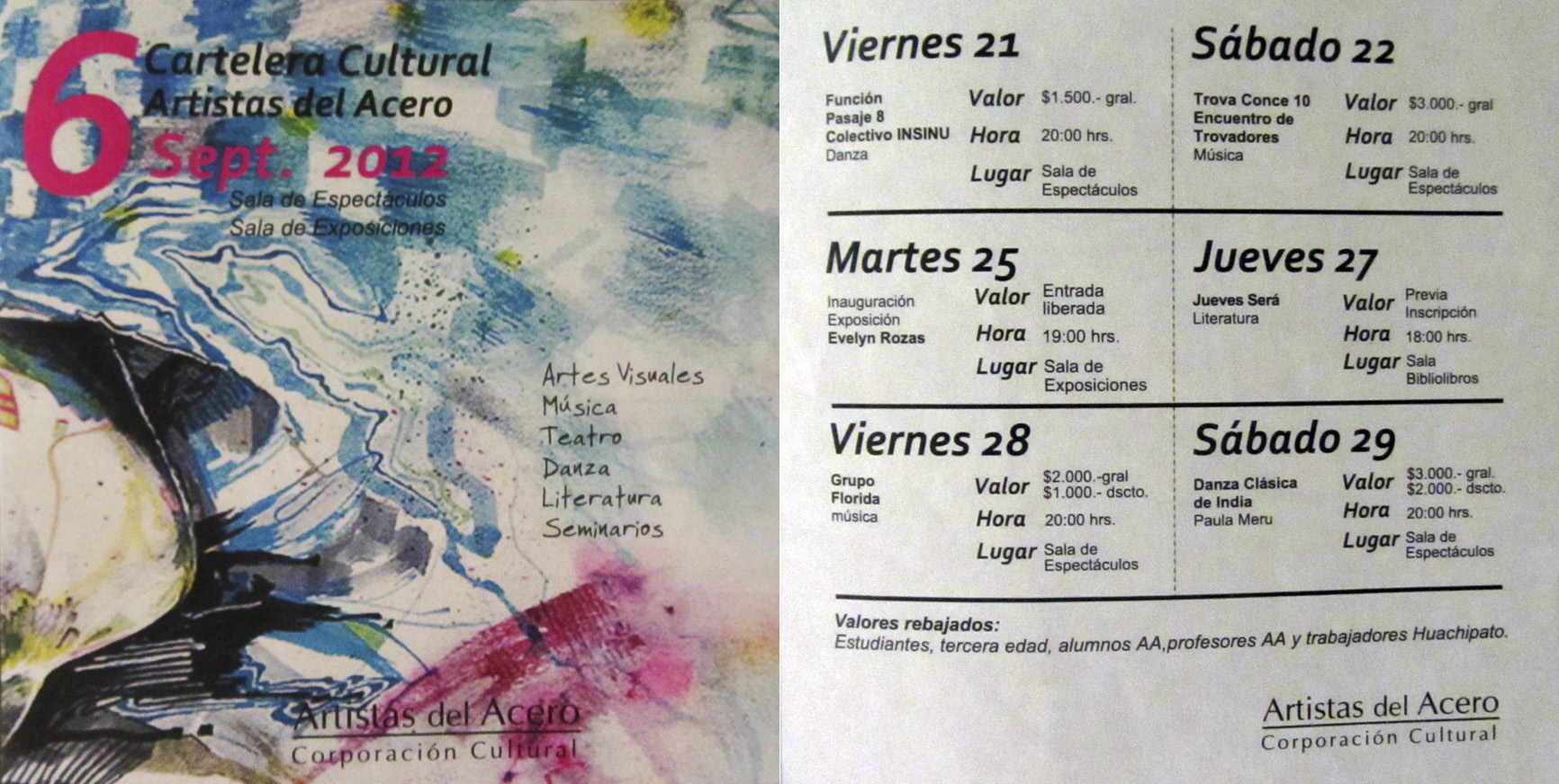 20 y 21 Sep 2012. *Insinú* en Chile Corporación Cultural Artistas del Acero, Concepción, Chile | Afiche | Programa | Prensa | Imágenes » |