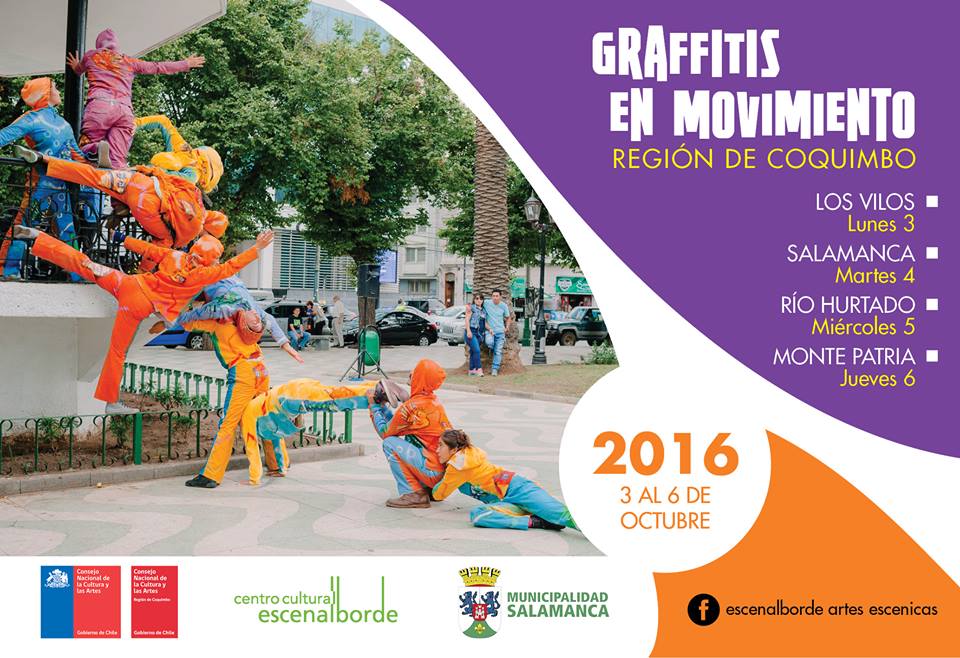 Trabajo colectivo guiado por Iván Sánchez de Escenalborde Artes Escénicas, creado originalmente para el Festival de las Artes Valparaíso (FAV) 2016. Se trata de un desarrollo de estructuras coreográficas en base a cuerpos con graffitis en sus vestimentas. Los intérpretes trasladan su corporalidad desde el elemento decorativo y estético hacia la denuncia a través de los murales.
